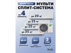 Mульти сплит-система на 4 комнаты 20+25+25+35м2 инвертор Ballu Free Match BA4OI-FM-36HN8/EU + BSUI-FM-07HN8/EU_BL + 2 BSUI-FM-09HN8/EU_BL + BSUI-FM-12HN8/EU_BL 4422381010