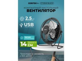 Вентилятор настольный CENTEK CT-5040 Black металл. решётка 14см, USB питание 664422355