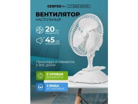 Настольный вентилятор CENTEK CT-5003 19 см белый Ростест (EAC) 7339622