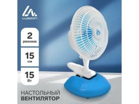 Вентилятор LuazON LOF-04, настольный, 15 Вт, 15 см, 2 режима, пластик, бело-голубой 4021009 101579632393