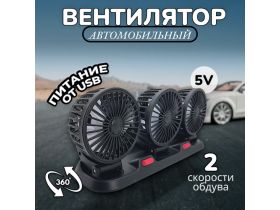 Автомобильный вентилятор/ Тройной вентилятор 5V/ Вентилятор от USB/ 2 скорости/ Настольный вентилятор 4556060146
