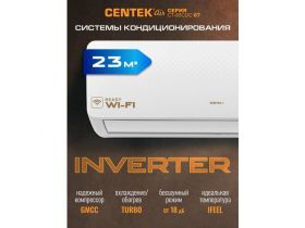 Сплит система инверторная Centek CT-65CDC07: 23м2/ Сверхтихий и Мощный/ 4D обдув/ А+/ компрессор GMCC 5353733438