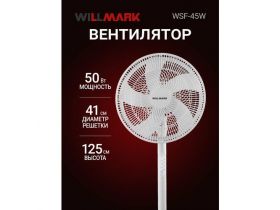 Вентилятор WILLMARK WSF-45W (напольный,1250мм/410мм/50Вт,3 ск,1шт./упак, белый) 103040910982
