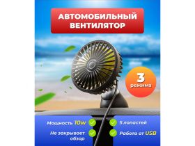 Автомобильный USB-вентилятор, 3 режима работы, 10w, на присоске 102660303305