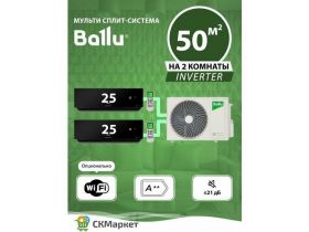 Технологичная мульти сплит система инвертор (кондиционер) на 2 комнаты (25+25) кв. м. Ballu Platinum Evolution BSUI-FM/in-09HN8/EU_BLх2/ BA2OI-FM/out-18HN8/EU, комплект черного цвета 5460740772