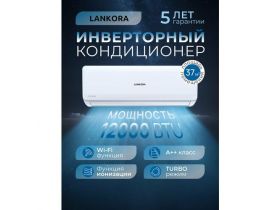 Сплит-система Lankora LAI-12 Diamond, мощность 12000 BTU, с Wi-Fi, А++ класс, инверторный кондиционер на 37 м², белый 4589701757
