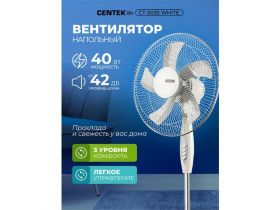 Вентилятор напольный Centek CT-5035 White, 40 Вт, Диаметр решётки 43 см, 3 скорости работы. 103831133926