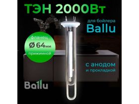 ТЭН Ballu, для водонагревателя, 2000 Вт, на прижимном фланце, 64 мм, с анодом и прокладкой 103819310173