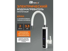 Водонагреватель регулируемый проточный электрический для кухни E8 tempo (кран с белым силиконовым гибким изливом) E8-S6-10D, мощность 3,3 кВт 4760076331