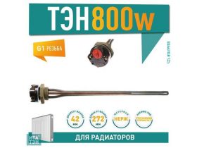 ТЭН радиаторный 800W, ИТА, нерж, Ø42, G1 1/4, L272мм, 220V + стержневой термостат (комплект) (p/n: 24065K) 101561015176