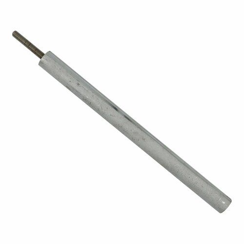 Анод магниевый для водонагревателей, бойлеров универсальный. Длина магниевой части 200 мм, длина шпильки с резьбой 35 мм. Диаметр магниевой части 16 мм. Резьба М6. Предназначен для водонагревателей с целью снижения распространения коррозии и накипи внутри бака. Представляет собой стержень из магниевого сплава на металлической шпильке с резьбой. Анод прикручивается к фланцу ТЭНа и вставляется внутрь бака водонагревателя.