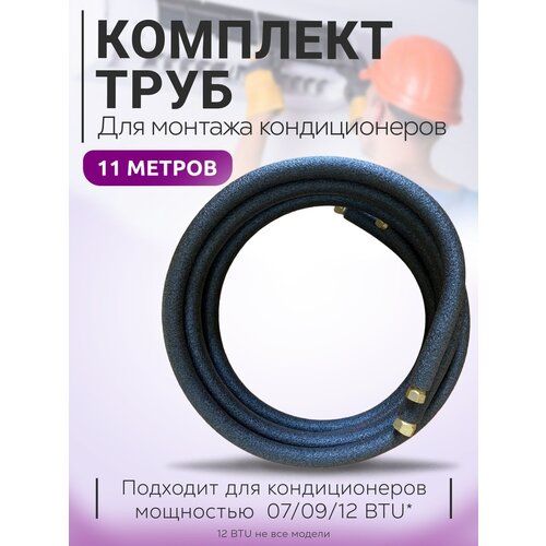 Готовые трбуки для самостоятельного монтажа кондиционера/сплит-системы. Готовые трубки в теплоизоляции с развальцованными концами для герметичного соединения блоков кондиционера. Подходит для кондиционеров с под соединительными размерами 1/4 и 3/8 (07,09 Модели; 7000BTU, 9000BTU, в некоторых случаях 12 Модели; 12000BTU). Труба медная в изоляции 1/4 -11м. Труба медная в изоляции 3/8 - 11 м. Гайка 1/4 - 2шт. Гайка 3/8 - 2шт.