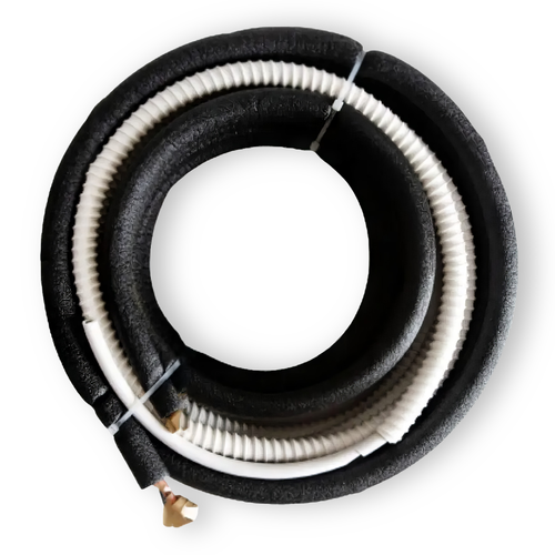 Готовая межблочная трасса для самостоятельного монтажа кондиционера/сплит-системы мощностью до 5 кВт. Состоит из готовых медных трубок 1/4" и 3/8" в теплоизоляции с развальцованными концами для герметичного соединения блоков кондиционера, дренажного шланга 5/8" для отвода конденсата от внутреннего блока, межблочного кабеля ПВС 5х1.5.