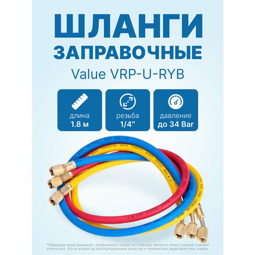 НАЙТИ ВЫГОДНЕЕ - Заправочные шланги Value VRP-U-RYB (1.8 м; 1/4 SAE; набор для R12, 22, 134, 404, 407, 507), до 34 Bar