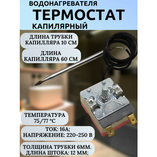 НАЙТИ ВЫГОДНЕЕ - Капиллярный термостат TBR 75/77°C (16А 250В) для водонагревателей Timberk, Thermex, Ariston, трубка капилляра: 10 см