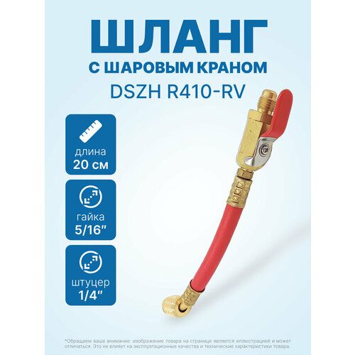 НАЙТИ ВЫГОДНЕЕ - Шланг с шаровым краном DSZH R410-RV красный (гайка 5/16 х 1/4 штуцер)