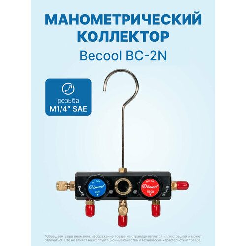 Манометрический двухвентильный коллектор Becool BC-2N предназначен для самостоятельного формирования манометрической станции под различные типы фреонов. Манометрический двухвентильный коллектор BC-2N изготовлен из высокопрочного анодированного алюминиевого сплава, моноблочный корпус с двумя вентилями, герметичным смотровым стеклом и пятью рабочими штуцерами и одним нерабочим, имеющими резьбу М1/4" SAE. В корпусе коллектора Becool BC-2N имеются сквозные отверстия для манометра и мановакуумметра с резьбой F1/8" NPT и глухое отверстие для крепления крючка для подвеса. Комплектация: — корпус коллектора — крючок для подвеса.
