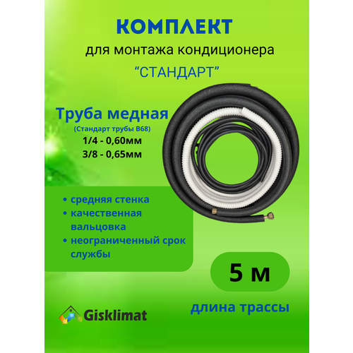 Готовый комплект 1/4 и 3/8 длиной 5 м - идеальное решение для монтажа вашего кондиционера. В категории аксессуаров и запчастей для кондиционеров этот набор выделяется своей универсальностью и качеством. Независимо от бренда вашего устройства, этот комплект подойдет для абсолютного большинства моделей.