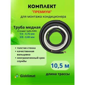 Готовый комплект премиум 1/4 и 3/8 длиной 10,5 м - идеальное решение для монтажа вашего кондиционера. В категории аксессуаров и запчастей для кондиционеров этот набор выделяется своей универсальностью и качеством. Независимо от бренда вашего устройства, этот комплект подойдет для абсолютного большинства моделей.