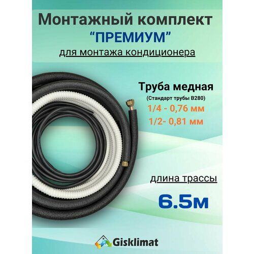 Готовый комплект премиум 1/4 и 1/2 длиной 6,5 м - идеальное решение для монтажа вашего кондиционера. В категории аксессуаров и запчастей для кондиционеров этот набор выделяется своей универсальностью и качеством. Независимо от бренда вашего устройства, этот комплект подойдет для абсолютного большинства моделей.