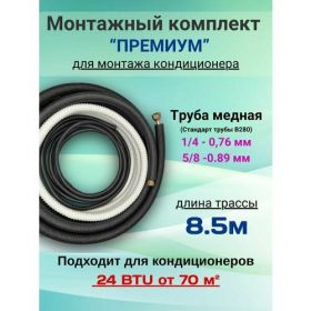 Готовый комплект премиум 1/4 и 5/8 длиной 8,5 м - идеальное решение для монтажа вашего кондиционера. В категории аксессуаров и запчастей для кондиционеров этот набор выделяется своей универсальностью и качеством. Независимо от бренда вашего устройства, этот комплект подойдет для абсолютного большинства моделей.