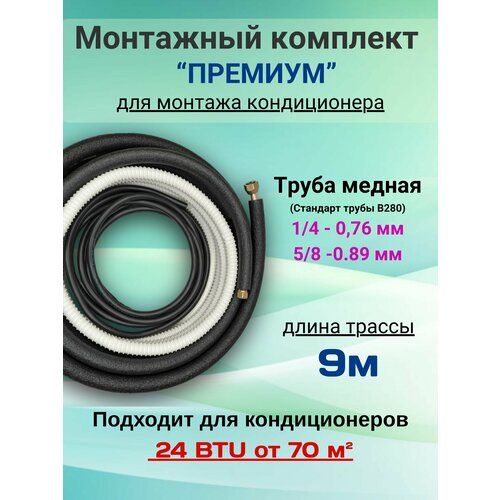 Готовый комплект премиум 1/4 и 5/8 длиной 9 м - идеальное решение для монтажа вашего кондиционера. В категории аксессуаров и запчастей для кондиционеров этот набор выделяется своей универсальностью и качеством. Независимо от бренда вашего устройства, этот комплект подойдет для абсолютного большинства моделей.