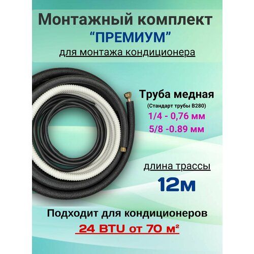 Готовый комплект премиум 1/4 и 5/8 длиной 12 м - идеальное решение для монтажа вашего кондиционера. В категории аксессуаров и запчастей для кондиционеров этот набор выделяется своей универсальностью и качеством. Независимо от бренда вашего устройства, этот комплект подойдет для абсолютного большинства моделей.