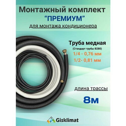 Готовый комплект премиум 1/4 и 1/2 длиной 8 м - идеальное решение для монтажа вашего кондиционера. В категории аксессуаров и запчастей для кондиционеров этот набор выделяется своей универсальностью и качеством. Независимо от бренда вашего устройства, этот комплект подойдет для абсолютного большинства моделей.