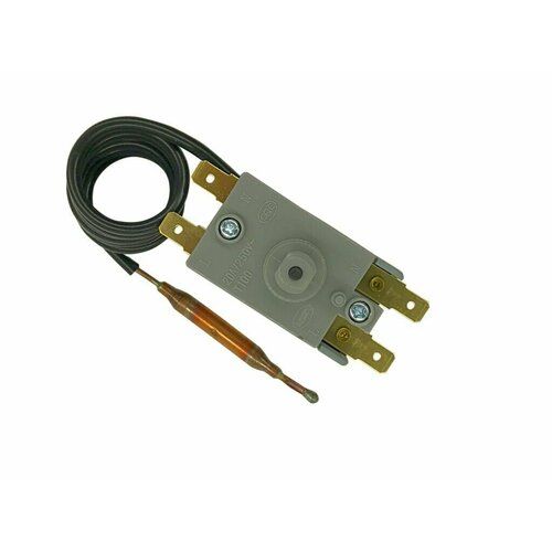 Аварийный термостат на 20А, производственный тип WQS, имеет двухполюсное аварийное размыкание в случае превышения температуры воды в водонагревателе выше 95 градусов. Считывание температуры происходит за счет расширения жидкой среды внутри капиллярного сосуда. Предназначен для защиты от вскипания воды в случае аварийной ситуации.