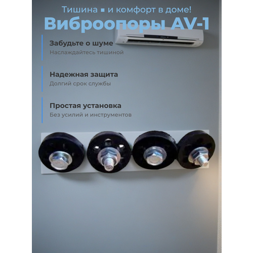 Антивибрационные опоры AV-1 для внешних блоков кондиционеров, комплект 4 штуки, гайки-болты-шайбы М8. Масса нагрузки до 120 кг.