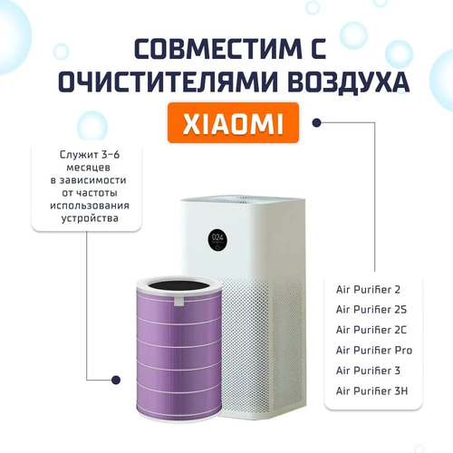 Фильтр предназначен для использования с очистителями воздуха Xiaomi Air Purifier, Air Purifier 2, Air Purifier 2S, Pro и 3 (3H).