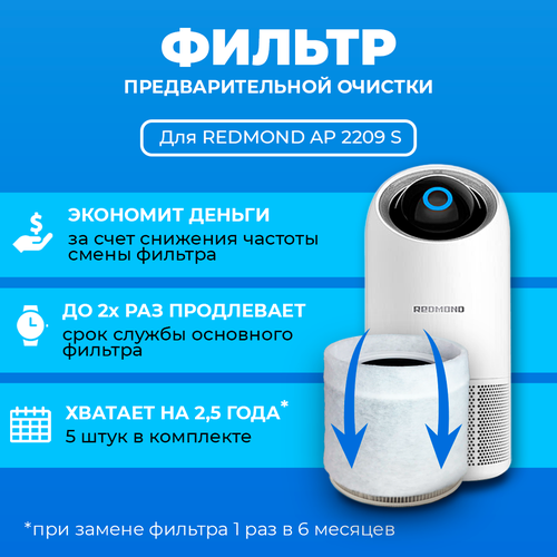 НАЙТИ ВЫГОДНЕЕ - Фильтр для очистителя воздуха REDMOND AP2209S. Префильтр. 5 шт.