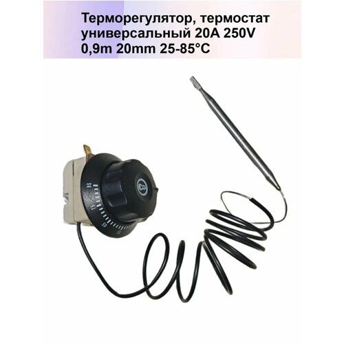 Капиллярный термостат с диапазоном регулирования 25-85 °С (аналог 55.13014.260) 20А 250V 0,9м 24мм с ручкой маховик. Регулируемый термостат универсальный предназначен для точного контроля температуры в водонагревателях, электрических котлах, мармитах ЭМК Абат , ЭМК-40, Шкаф расстоечный тепловой ШРТ, печи, духовок, пмэс кипятильников и т. п Термостат с капиллярной трубкой - стабильное и надежное устройство гарантирующее комфорт и безопасность в использовании вашего оборудования.