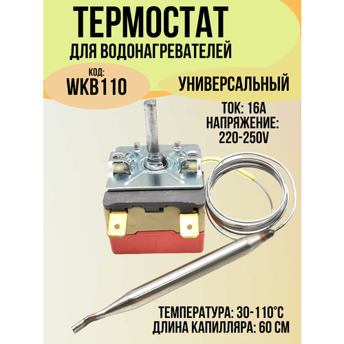 Термостат капиллярный для водонагревателя WKB-110 - это регулируемый аксессуар, который обеспечивает точное поддержание заданной температуры в вашем водонагревателе.