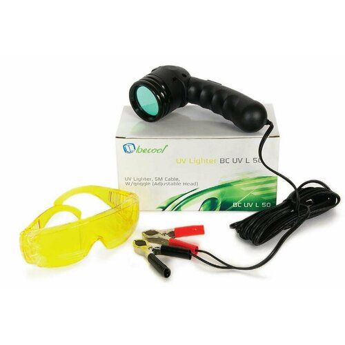 Комплект ультрафиолетовая лампа 50 Вт, 12V и защитные очки для защиты глаз от UV спектра, предназначены для поиска утечек хладагента, с предварительно введенным в систему ультрафиолетовым индикатором, в лучах ультрафиолетового спектра.