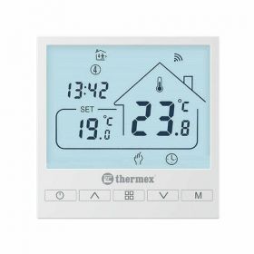 Thermex Axioma Wi-Fi – программируемый комнатный термостат, позволяющий отслеживать актуальную температуру помещения, а также устанавливать необходимые настройки нагрева для поддержания комфортной и оптимальной температуры в доме.