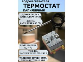 Капиллярный термостат TBR 75/77°C (16А 250В) для водонагревателей Timberk, Thermex, Ariston, трубка капилляра: 10 см 101861410249
