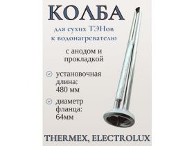 Колба для сухих ТЭНов к водонагревателям Electrolux, Thermex 480 мм/ RF64 тип RES, комплект с анодом и прокладкой 4330881199