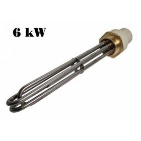 Блок тэнов 6,0кВт ( 3х2кВт ) с фланцем из латуни G2 (59мм) с колпаком, для котлов . Длина тэна с колпаком 410 мм: длина тэна с контактами и трубкой 370 мм, посадочная длина 325 мм, активная длина 310 мм, длина резьбового фланца 15 мм, диаметр резьбового фланца 59 мм. Блок состоит из трех тэнов из нержавеющей стали по 2 кВт каждый, рассчитанные на напряжение 220V. Общая мощность 6 кВт . Частота тока 50Гч. ТЭН представляет собой группу электронагревателей, смонтированных во фланце, путем обжатия в отверстиях последнего. По центру вмонтирована трубка под термостат. Диаметр трубки тэнов 8мм, диаметр трубки под термостат 10 мм. Для крепления блоков на объекте фланец снабжен правой резьбой, а с обратной стороны шестигранником под ключ 72 мм . Контактные стержни электронагревателей соединены между собой перемычками. Предназначен для нагрева жидкостей. Используются в котлах, баках, бойлерах. Подключать блок можно в трехфазную или однофазную сеть. Конструкция блоков является неразъемной. Эксплуатировать блоки можно только в той среде, для которой они предназначены. Активная часть корпуса электронагревателей блоков должна полностью находиться в рабочей среде. Вес всей детали 780 г. Изготовлен компанией SINAN, Турция.