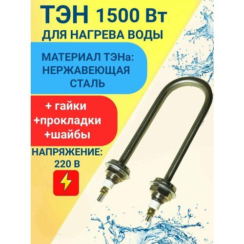 НАЙТИ ВЫГОДНЕЕ - ТЭН для нагрева воды 1,5 кВт, 220В, U-образный, нержавейка, с гайками и прокладками