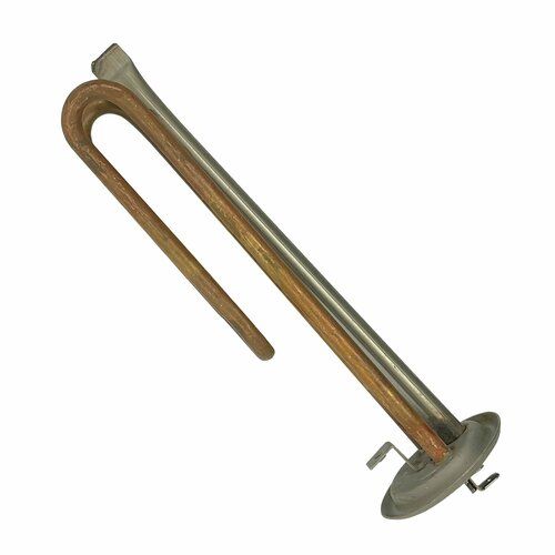 Медный ТЭН мощностью 1,5кВт и напряжением 230В, имеет прижимной фланец 64мм. в который впаян сам ТЭН и трубка под датчик температуры.