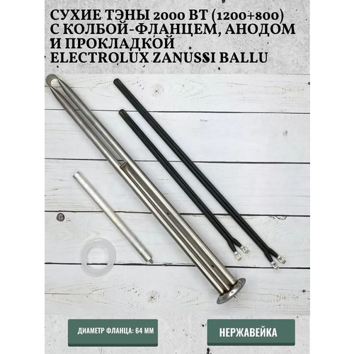 НАЙТИ ВЫГОДНЕЕ - Сухие ТЭНы 2000Вт (1200+800W), с фланцем 64мм, нерж, с анодом и прокладкой, для Electrolux, Zanussi, Ballu