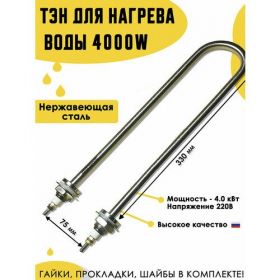 НАЙТИ ВЫГОДНЕЕ - ТЭН для нагрева воды 4,0кВт.220В, U- образный, нерж, крепеж в комплекте.