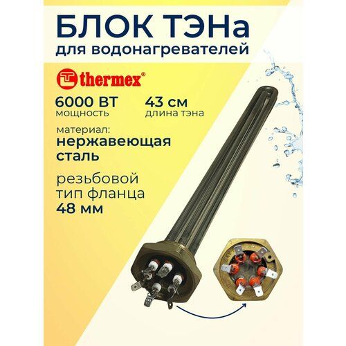 НАЙТИ ВЫГОДНЕЕ - Блок ТЭНов 6000W/230V (3х2000W), нержавейка, L-430мм для водонагревателей Thermex, для серий IRP / ER 200-300