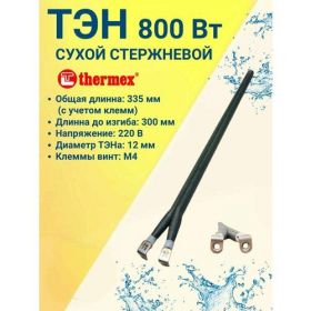 НАЙТИ ВЫГОДНЕЕ - ТЭН Сухой 800 Ватт, стержневой, для водонагревателей Thermex, клеммы винт М4