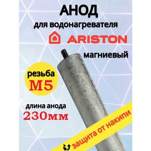 Анод для водонагревателя Ariston на М5 самый универсальный - подходит на все водонагреватели Ariston объемом бака от 30 до 200 литров с похожими техническими параметрами магниевого анода - резьба М5, диаметр тела анода до 21 мм и длина 230 мм ( а если анод не входит - то его без проблем можно отпилить до необходимого размера и даже сделать 2 анода