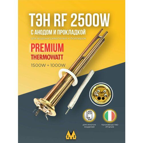 НАЙТИ ВЫГОДНЕЕ - ТЭН PREMIUM тип RF 2500W (1500+1000) медь в комплекте с анодом и прокладкой