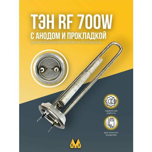 ТЭН тип RF 700W нержавейка с анодом и прокладкой для водонагревателя Thermex, DEXP. ТЭН тип RF мощностью 700W на фланце диаметром 64 мм - идеальное решение для вашего водонагревателя. ТЭН изготовлен из нержавейки, что обеспечивает высокую эффективность и долговечность. Подходит для использования с такими брендами, как Thermex, DEXP.