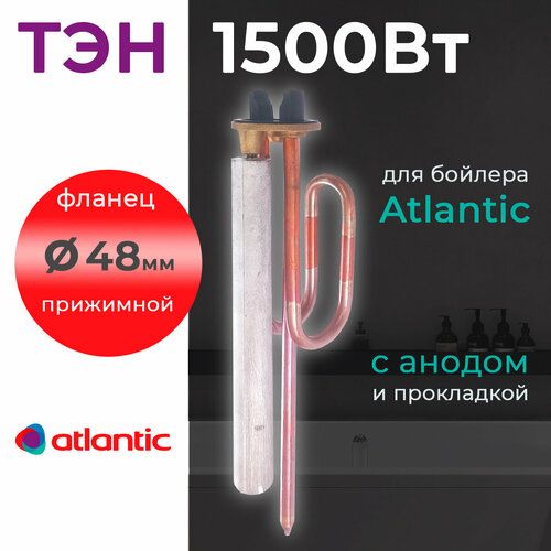 НАЙТИ ВЫГОДНЕЕ - ТЭН Atlantic, для водонагревателя, 1500 Вт, на прижимном фланце, 48 мм, с анодом и резиновой прокладкой