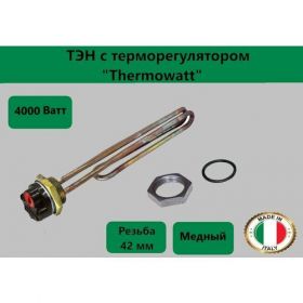 НАЙТИ ВЫГОДНЕЕ - ТЭН универсальный RCT 4000 Вт(4 кВт) (Thermowatt) Италия с терморегулятором , для водонагревателя с гайкой и прокладкой в комплекте